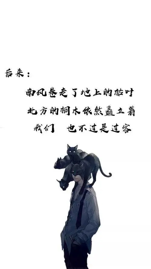8. 黄昏的秋天漫步在幽幽的小道,一缕秋风轻轻吹过,散了手心里的温度,碎了往日的梦,留下了一个孤寂的身影。我以为戒掉你,我会快乐,可使我成瘾的不是你,而是寂寞,还是没能习惯少了你陪我看,花开花落,潮起潮落,泪雨过后也会有阳光闪烁,而你已不在是我避风的角落。